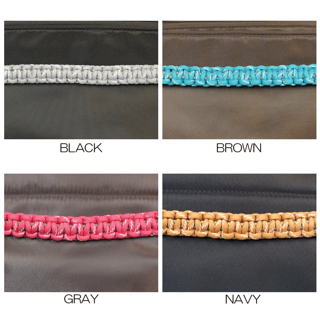 編みパラコードハンドルがデザインのアクセントになった高密度ポリエステルを使用したバッグシリーズです。
