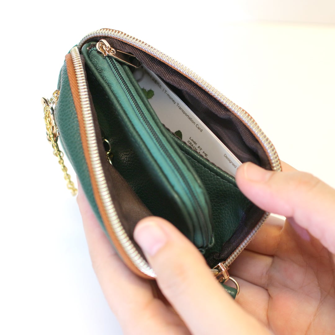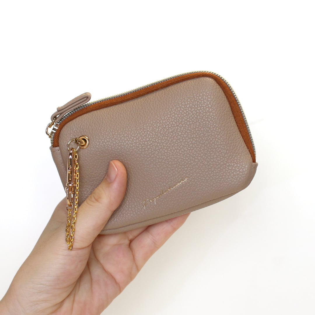 しぼ合皮を使用したポーチ型のミニウォレットです。