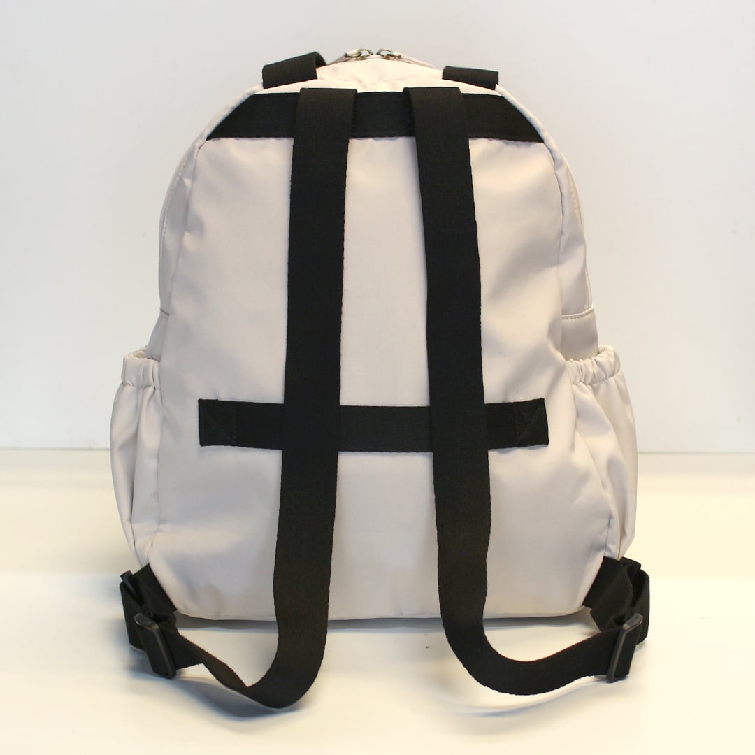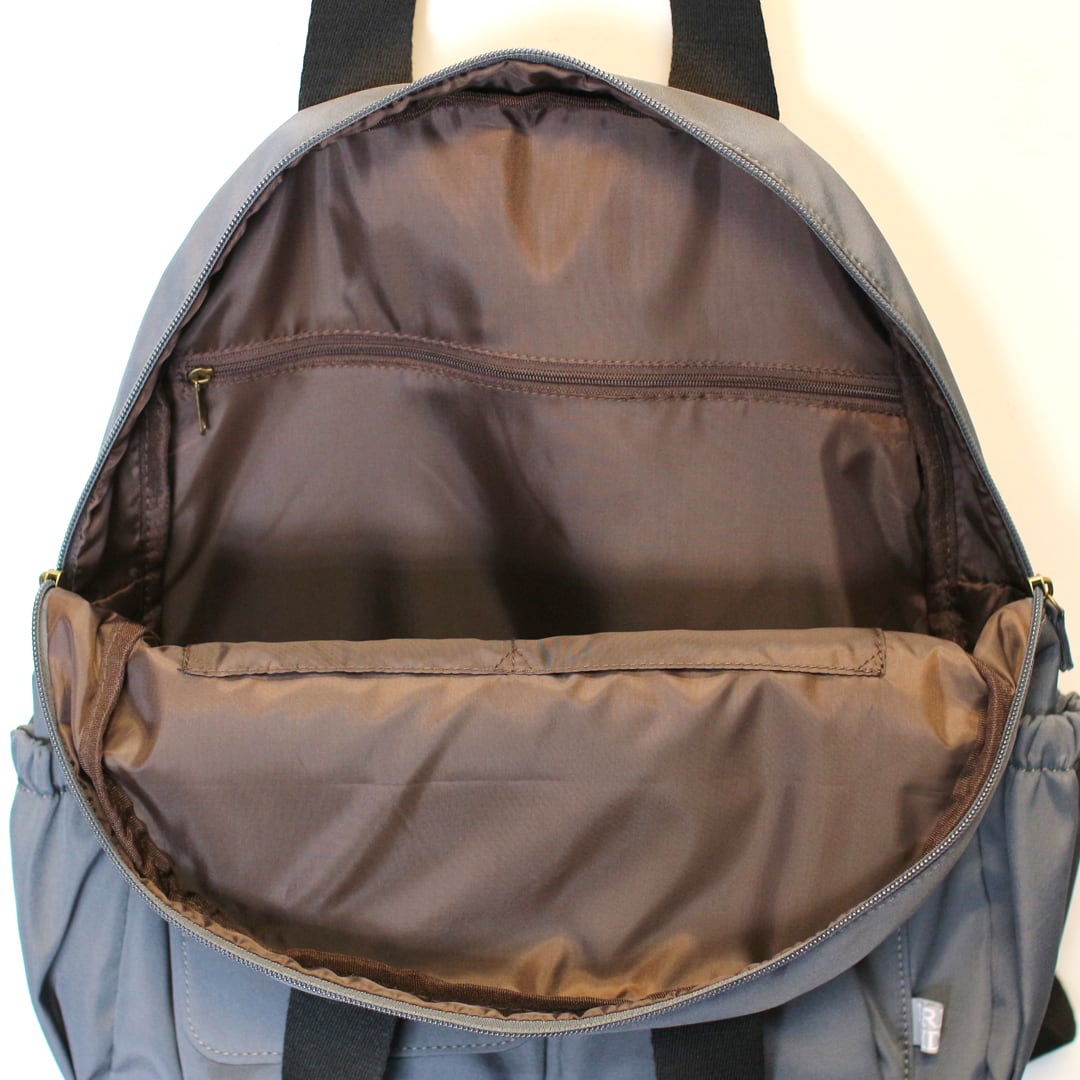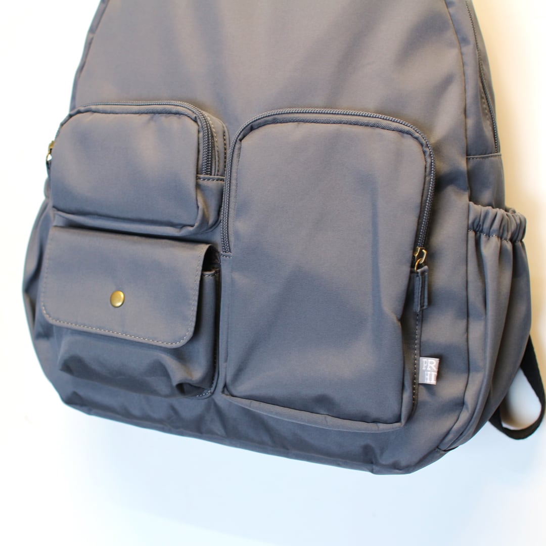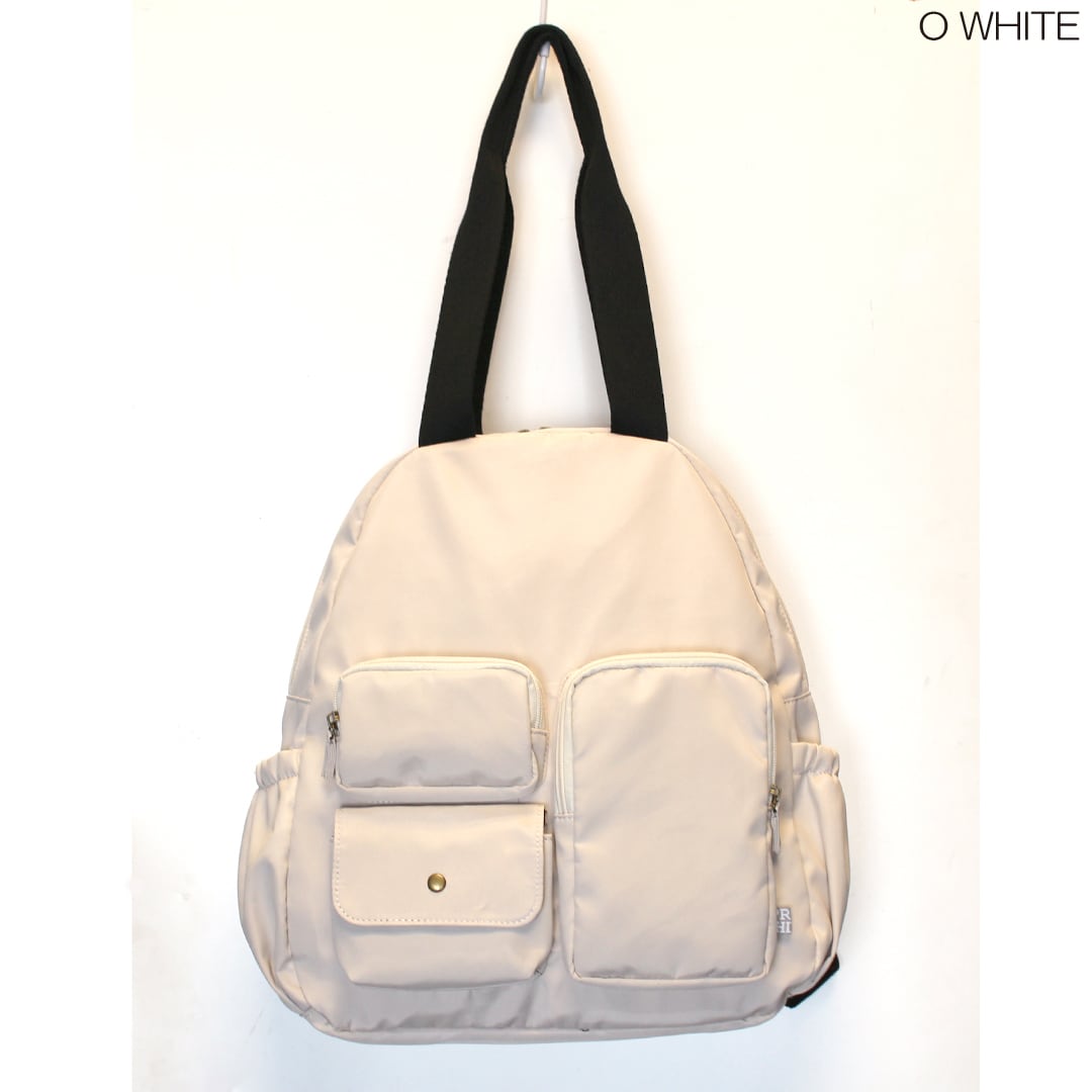マットで優しい風合いの高密度ポリエステルを使用したリュックとしても使える多ポケットボストンです。