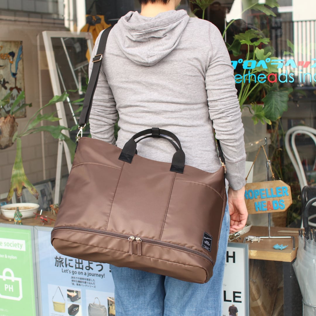 底ポケット付きで使い勝手の良さが魅力のトラベル用途にも便利なボストントートです。