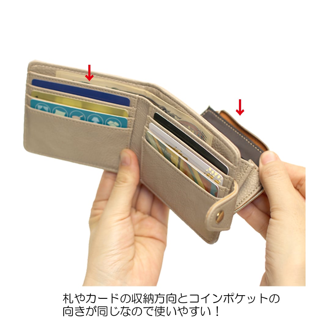 札入れ(カード入れ)とコインポケットの向きを揃えることで、より使いやすくなりました。