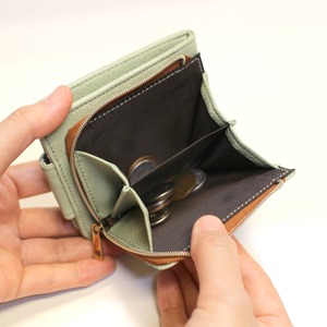 大きく開いて中身が見やすいコインポケット、背面にはIC用などが収納できるカードスリットが付いております。