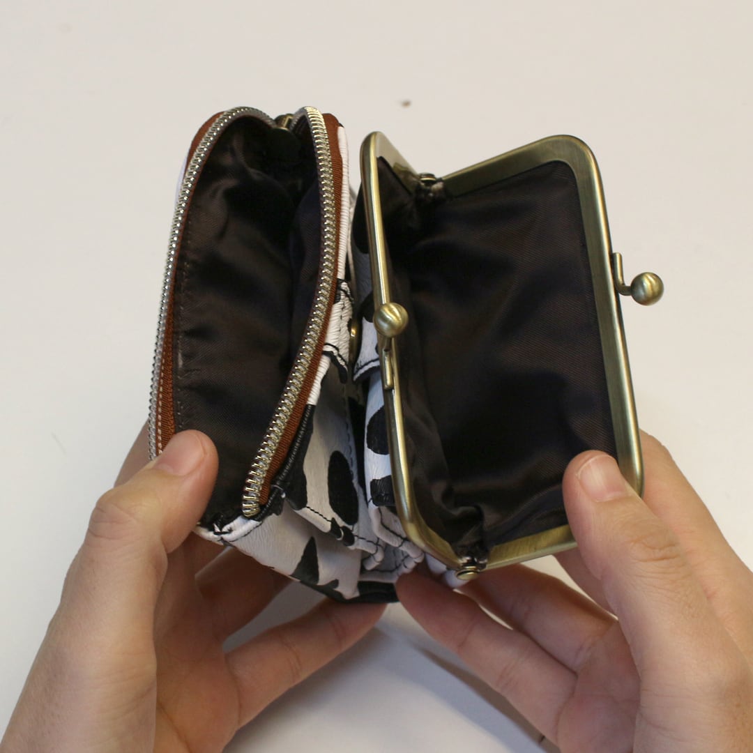 がま口+ファスナーポケットでコイン以外のカード類などをまとめて収納することもできます。