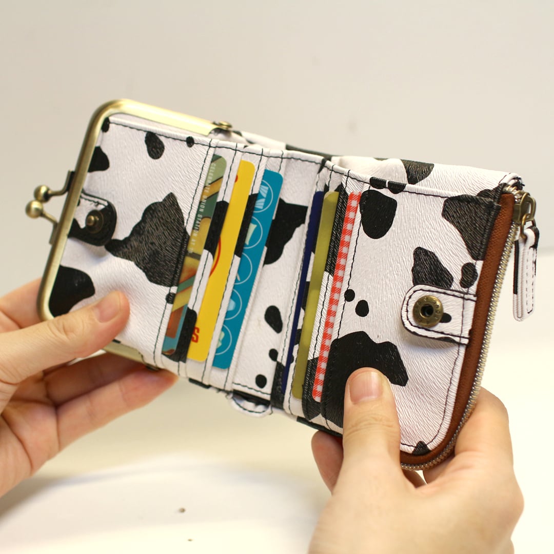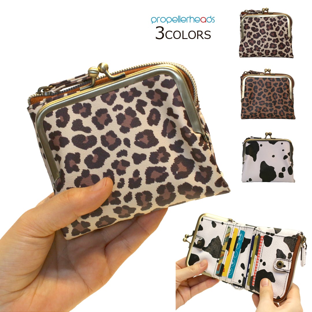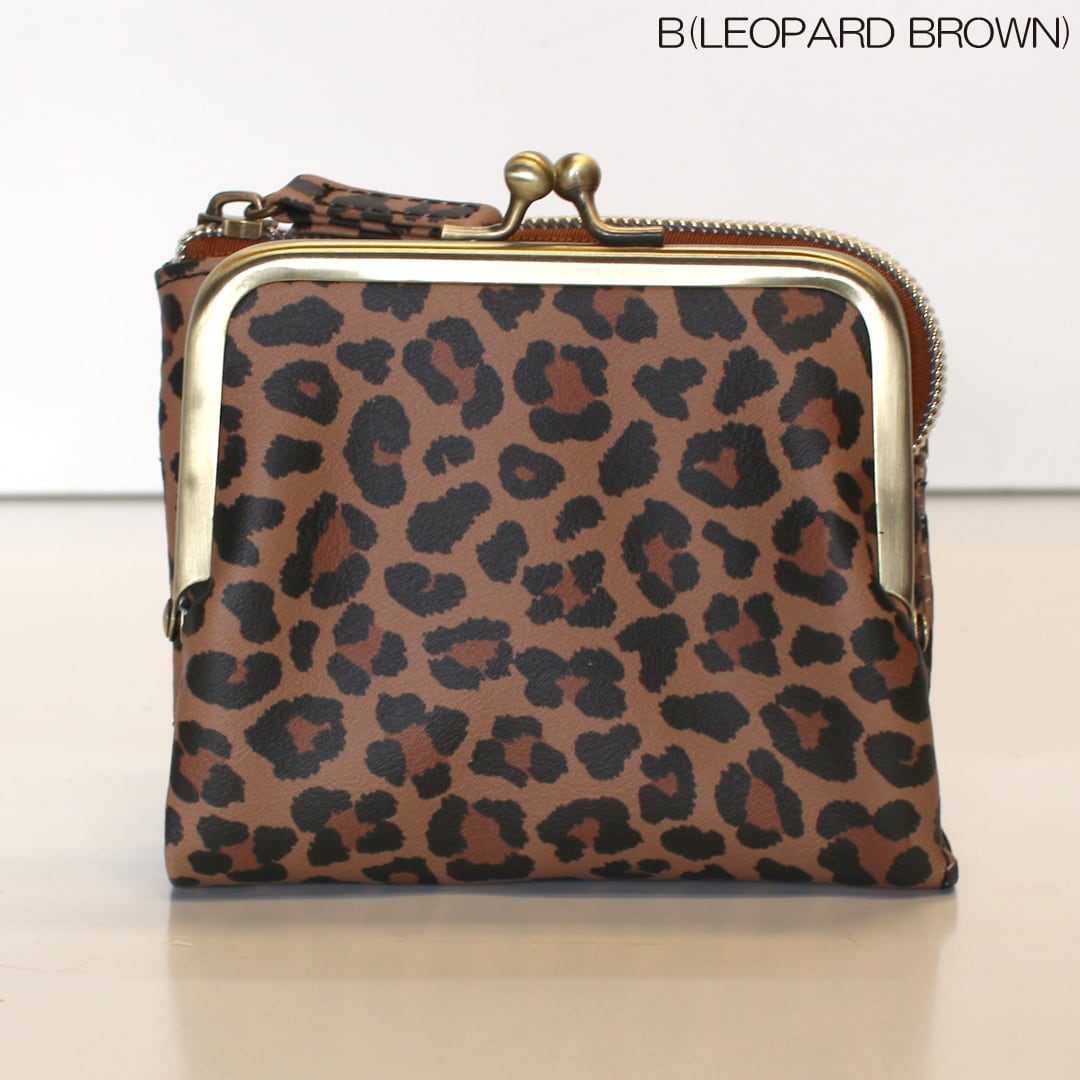 アニマル柄合成皮革がま口二つ折りウォレット [11-1998A]