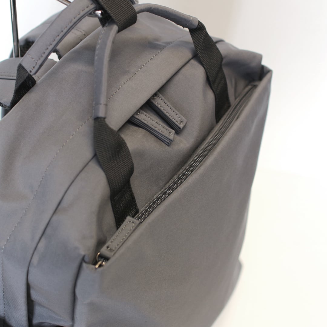 しっかりとハリ感のあるはっ水高密度ポリエステルを使用したシンプルで使いやすいミディアムサイズのリュックです。