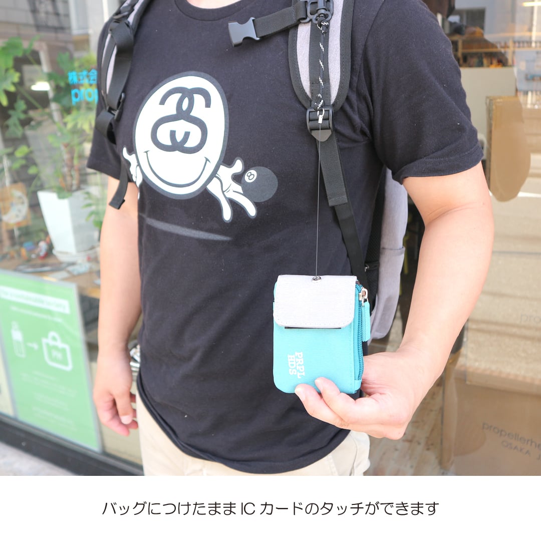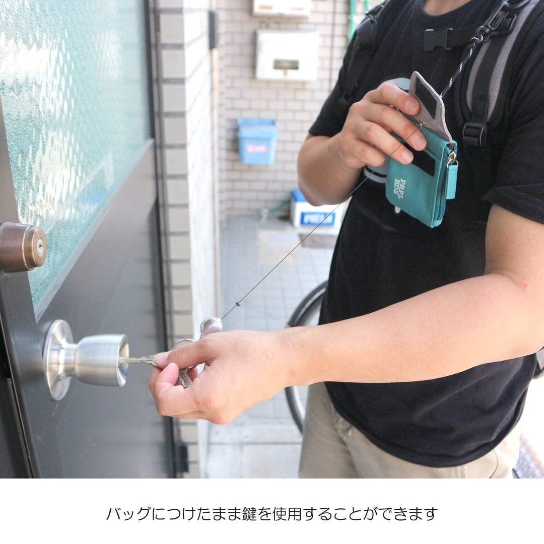 リールコードが付属していますので、バッグに取り付けたままICカードのタッチ、鍵の開閉も可能です。