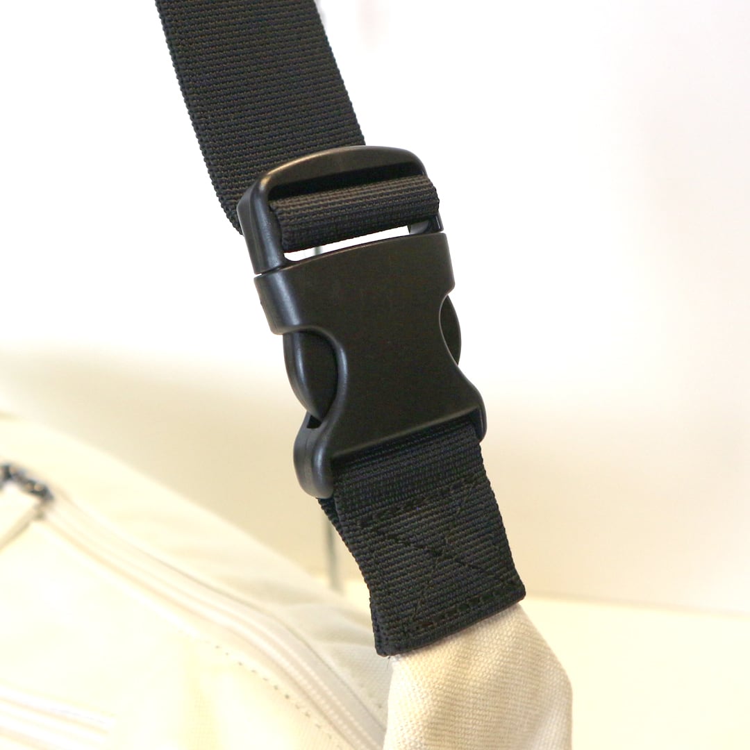 フロントにはファスナーポケット付きでショルダーはバックル着脱が可能です。