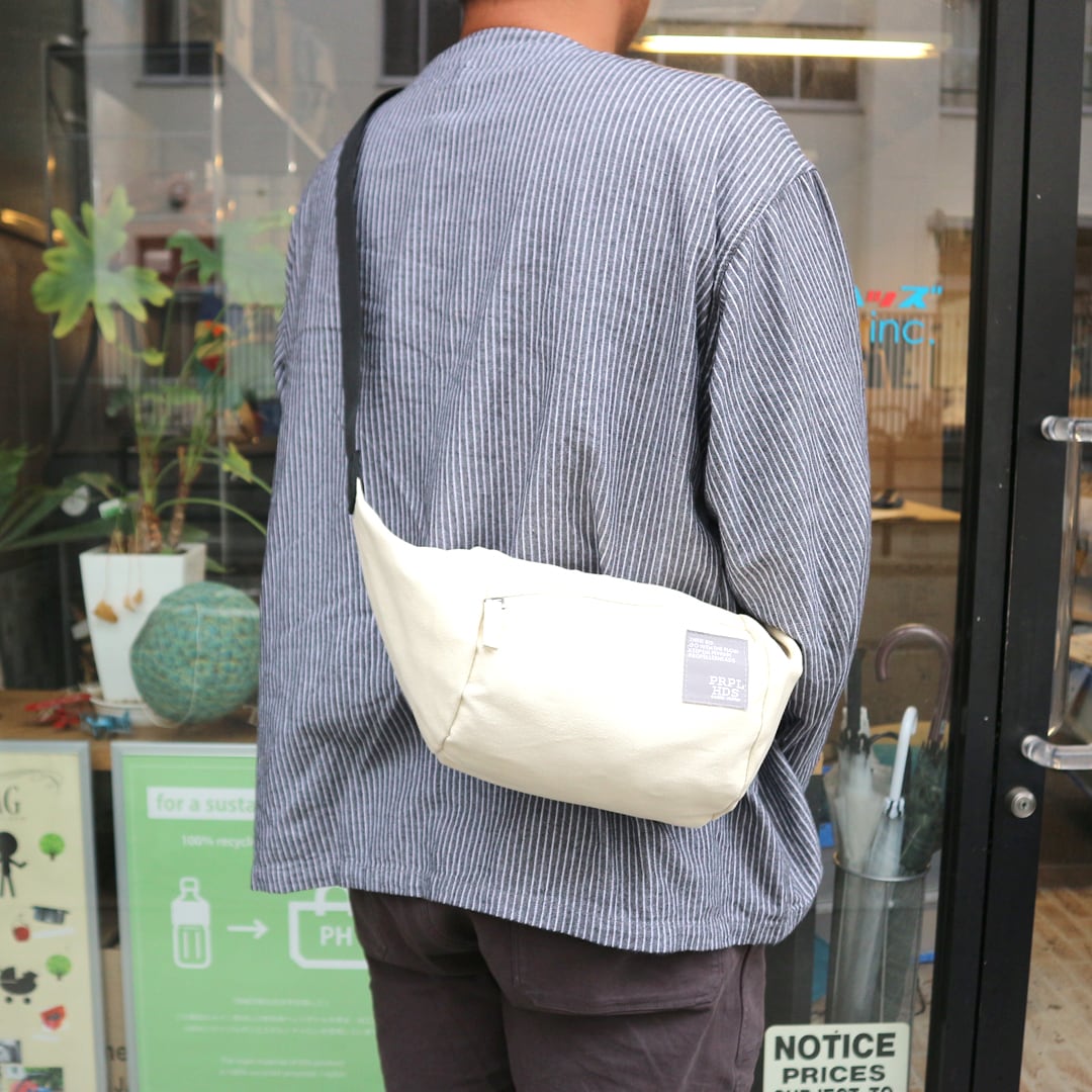 トレンドのキャンバス素材を使用したボディバッグのようにお持ちいただけるショルダーバッグです。